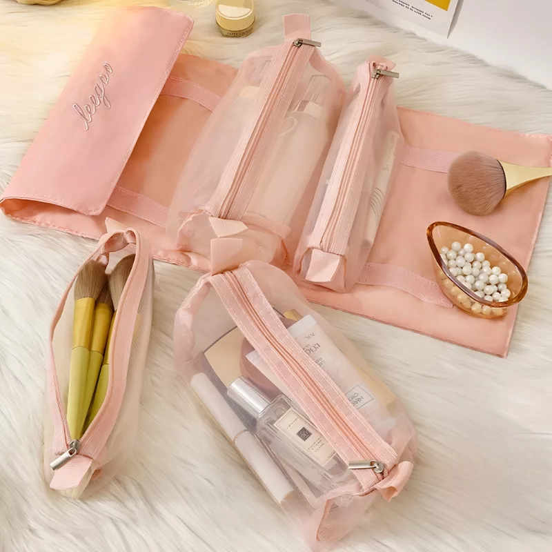This folding cosmetic bag allows you to sort your beauty products more efficiently. The compact design fits easily into carry-ons or backpacks, saving space. It is ideal for quick getaways, long vacations, and daily use. Durable zippers and waterproof material protect your items from spills and leaks.