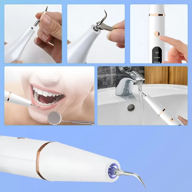 Our ultrasonic tooth cleaner automatically stops working upon contact with the gums. It prevents accidents during cleaning, guaranteeing a pain-free and comfortable experience.